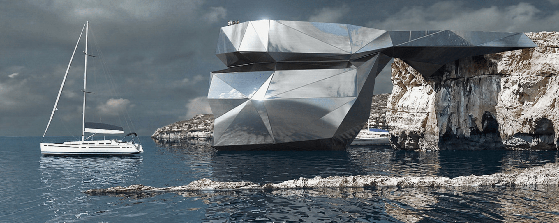 I love Malta very much, and I understand that nature is one of the archipelago’s most important treasures.For this reason, we have designed a construction that will evenly distribute its mass along the cliffside. We have also incorporated a seamless, integral structure for the main body of the project, drawing on techniques used in shipbuilding. This will enable us to instal the ready-built structure on a stable platform beneath the cliff. To achieve the metallic effect on the surface of the structure, we propose to utilise the latest ecological materials used in shipbuilding and architecture. This will protect the surface from corrosion, fire, distortion, and will also prevent any negative environmental impact. – Svetozar Andreev