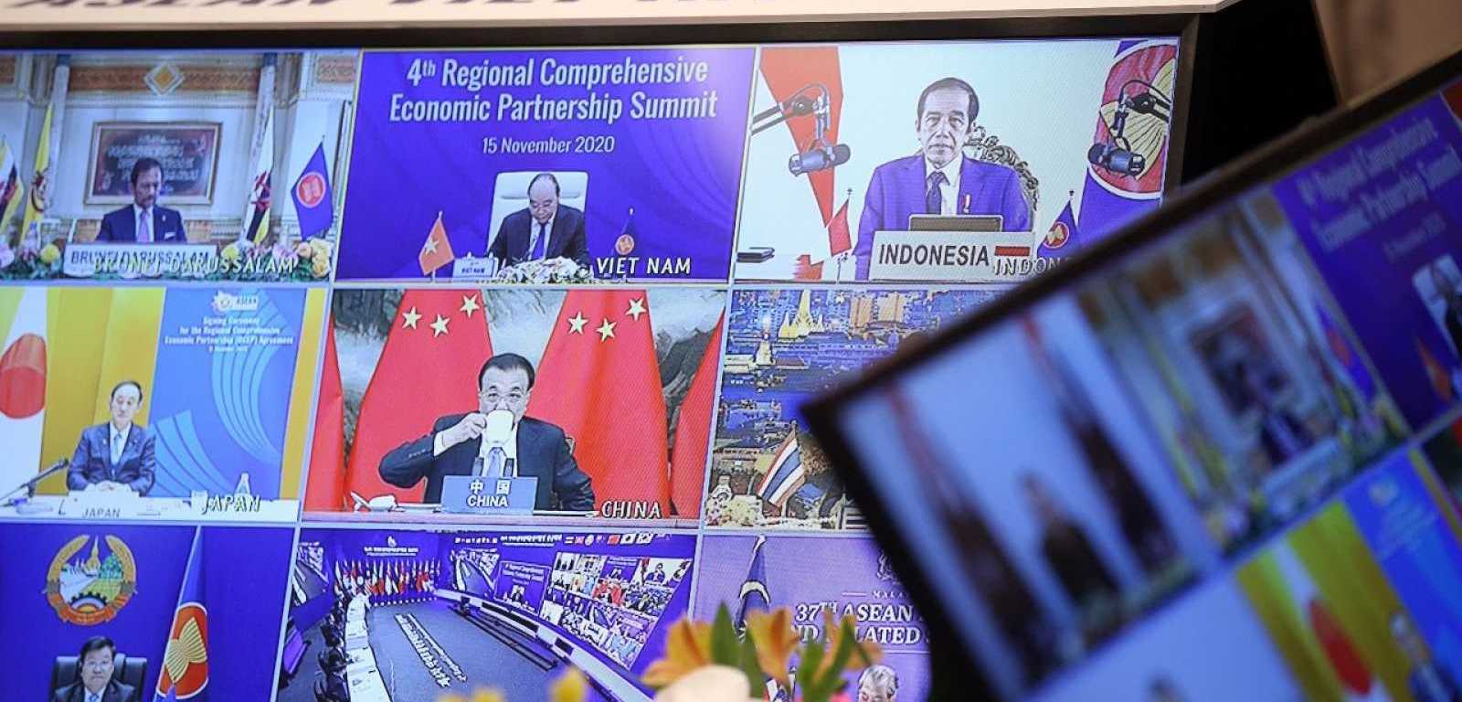 El acuerdo, firmado virtualmente debido a la pandemia de la COVID-19, incluye a China, Japón, Corea del Sur, Australia y Nueva Zelanda, así como a los diez países de la Asociación de Naciones del Sudeste Asiático (ASEAN).